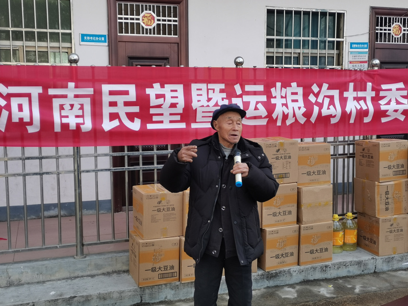 本次活动由河南民望农牧股份有限公司举办,公司代表-冯衡到现场慰问,运粮沟村委党支部冯书记代表全村老人表示了对公司的感谢!
